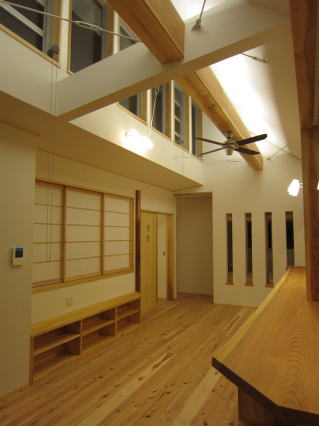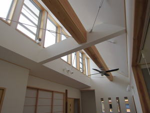 冬は採光を取り入れ、夏場は遮る高窓。