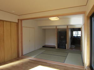 静岡県 袋井市 ・ リフォーム 2階が鉄骨、1階は木造の特殊構造。 私の父が、約40年程前に設計した建物 この度店舗を小さくして、住まいを1階にも設け、 階段の上り下りをしなくても暮らせるよう改造しました。 築40年、大切に暮らしていただいてありがとうございます。