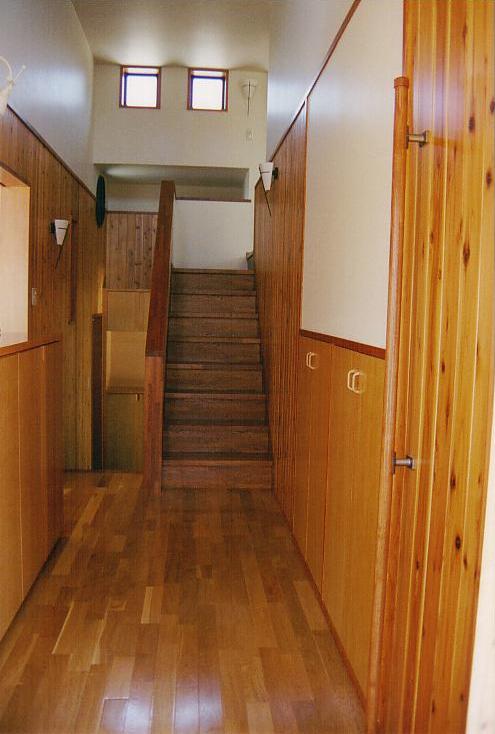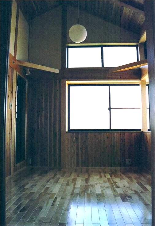 天龍桧を主構造とし、天井や腰壁には、杉板+柿渋塗装を施した。