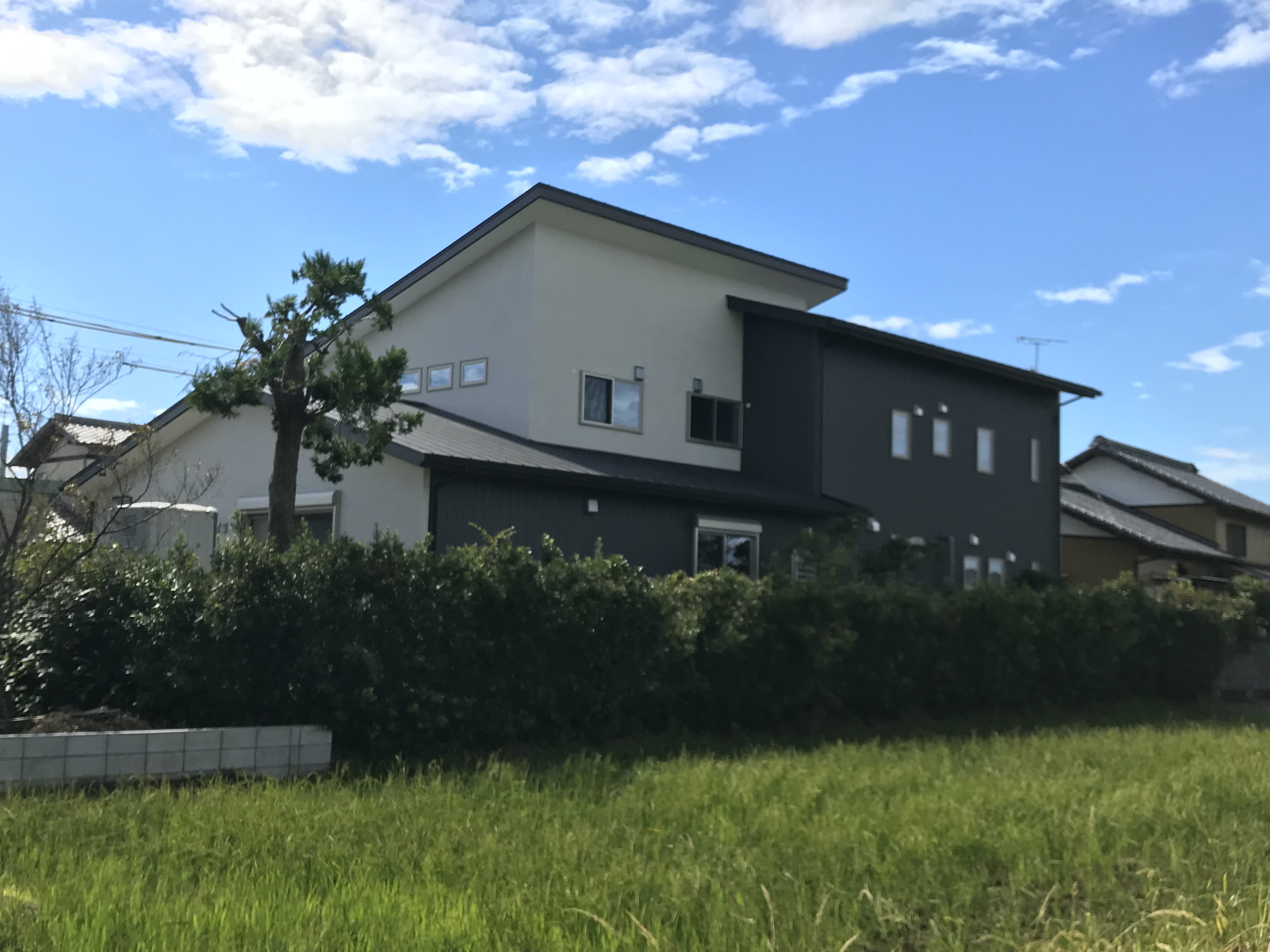 外壁: 塗り壁、北面:ガルバリウム鋼板